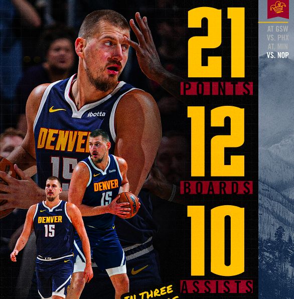 掘金在揭幕战输球之后,球队迅速调整过来,而约基奇也变得更加高效,这次15中10拿到三双数据,这也是他开季连续4场拿到三双数据,追平历史最多,并列历史第一的位置。按照这个势头下去,超越也是没有啥问题的。