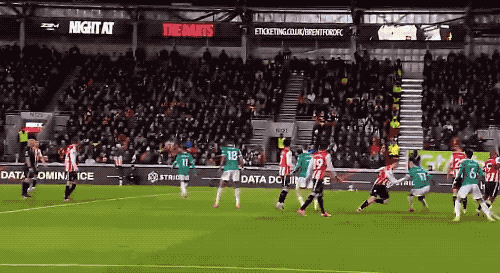 开场只有5分钟,布伦特福德的大力界外球就转化为了进球,卡约德将球投掷到了小禁区附近,阿约尔摆渡,瓦塔拉一记精彩的凌空侧钩,打破僵局。