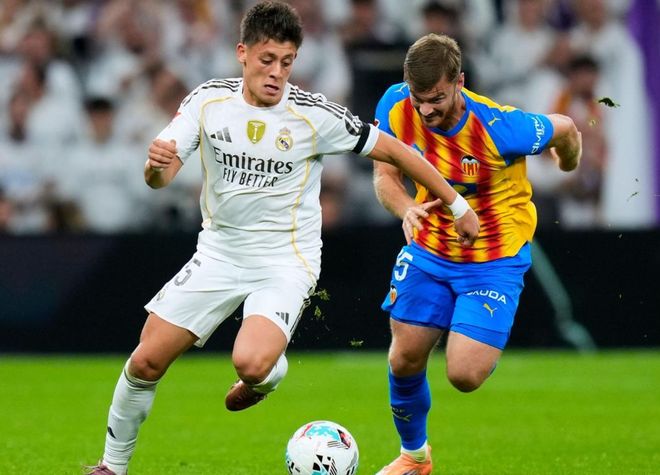 下半场易边再战,阿隆索派上了塞瓦略斯和卡马文加。第60分钟,姆巴佩在禁区内的抽射被门将神勇扑出。3分钟后,阿尔梅达带球内切远射,门将把球扑出。第68分钟,皇马继续换人,劳尔-阿森西奥替补上场,赫伊森被换下。4分钟后,姆巴佩的远射踢偏了。随后,卡马文加的远射踢高了。第82分钟,卡雷拉斯爆射破门,锦上添花。最终,皇马4-0大胜瓦伦西亚。皇马30分领跑,甩开少赛一场的巴萨8分。